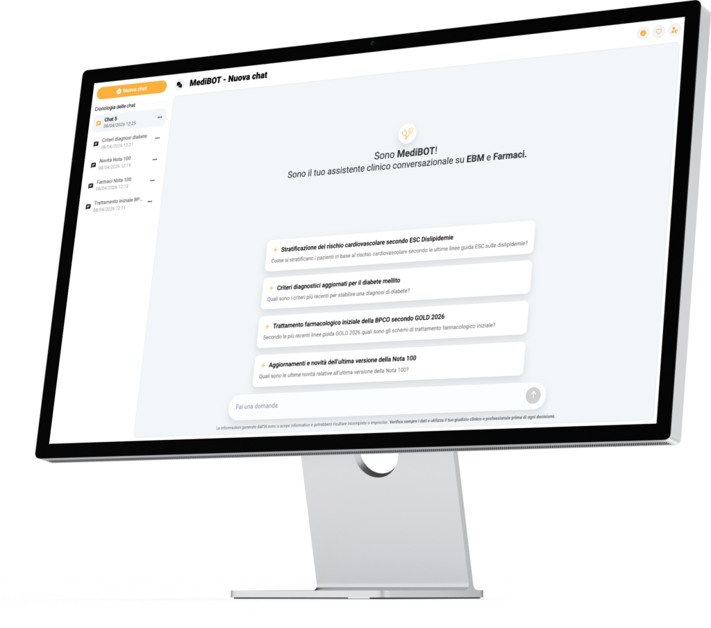 MediBot traduce la complessità delle evidenze scientifiche in risposte operative per il contesto clinico quotidiano del medico di medicina generale.